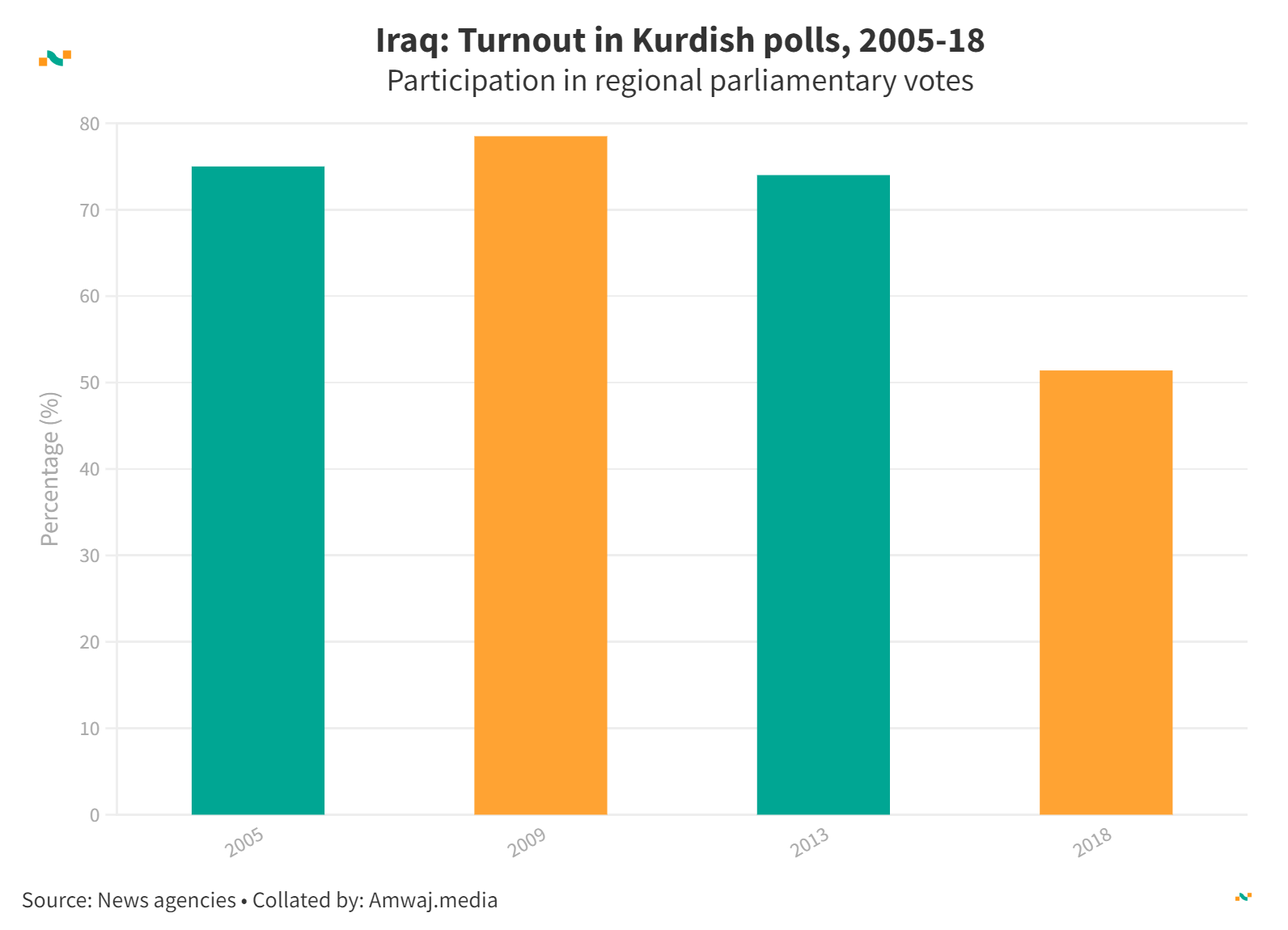 Iraq: Turnout in Kurdish polls, 2005-18