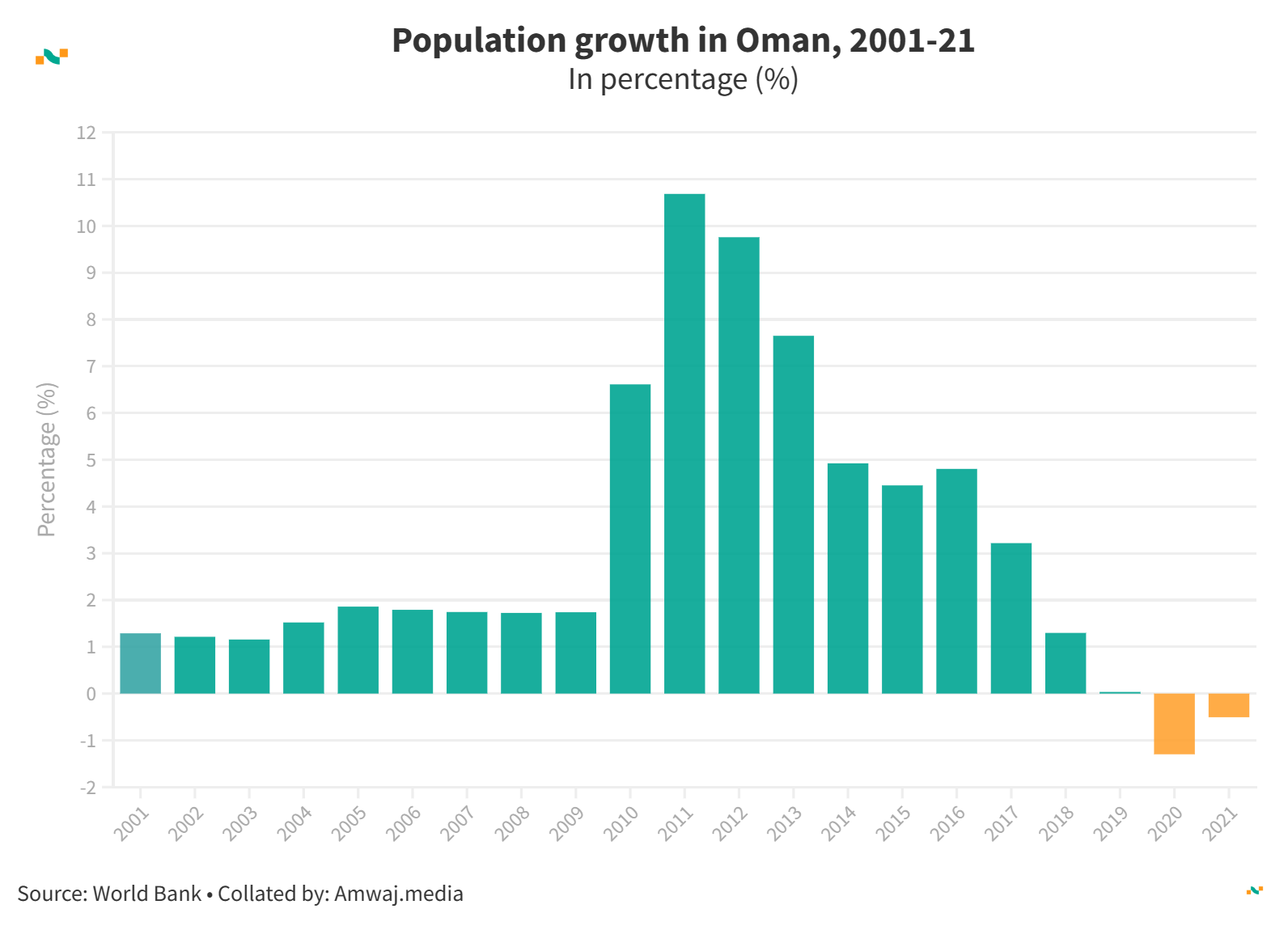Population growth in Oman, 2001-21