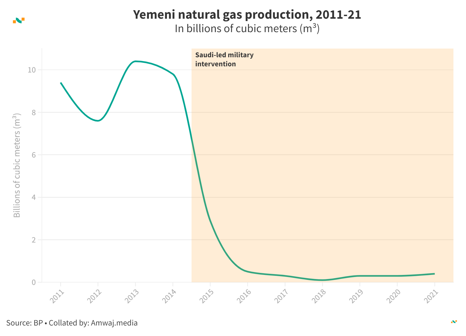 Yemeni natural gas production, 2011-21