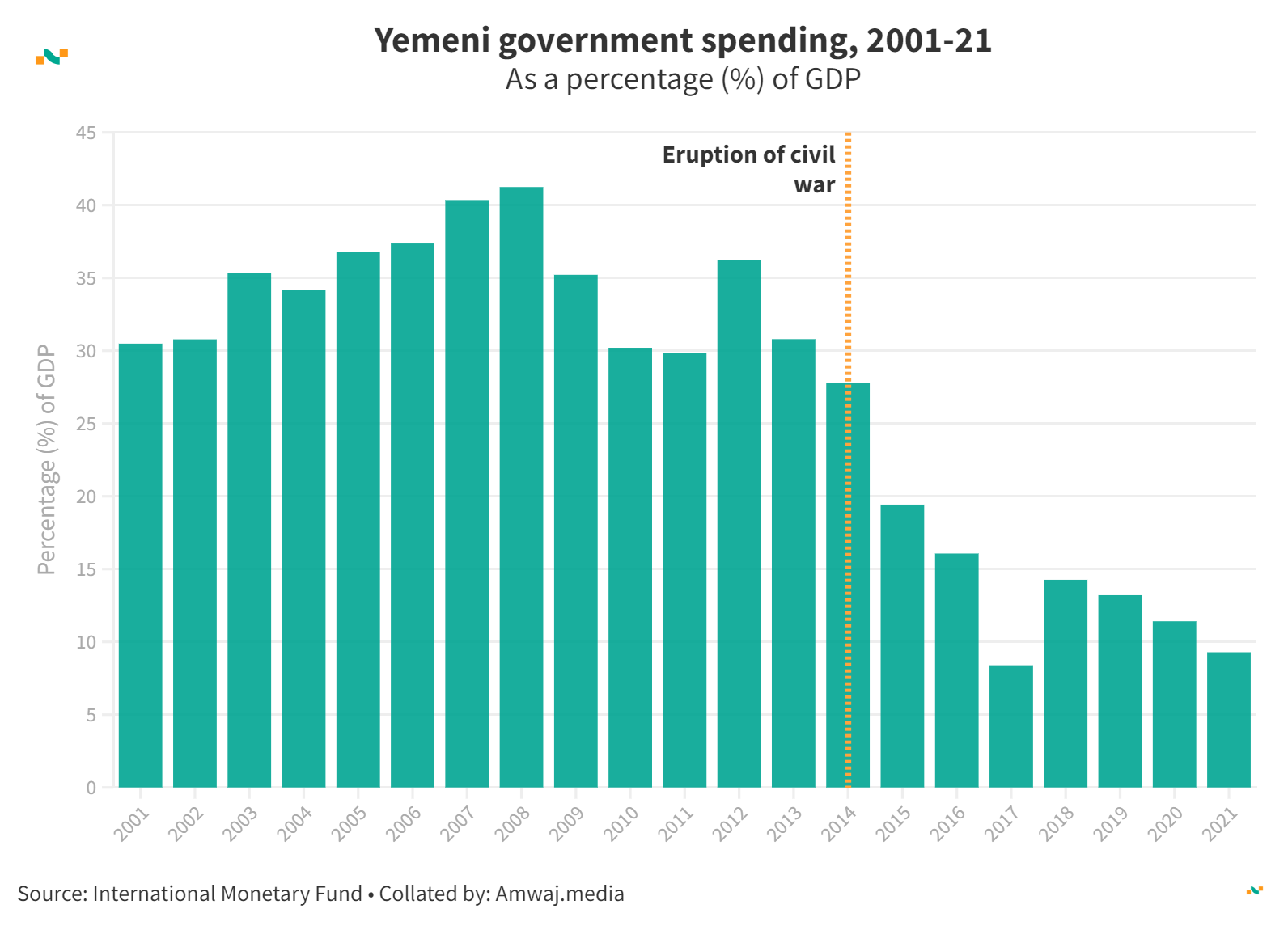 Yemeni government spending, 2001-21