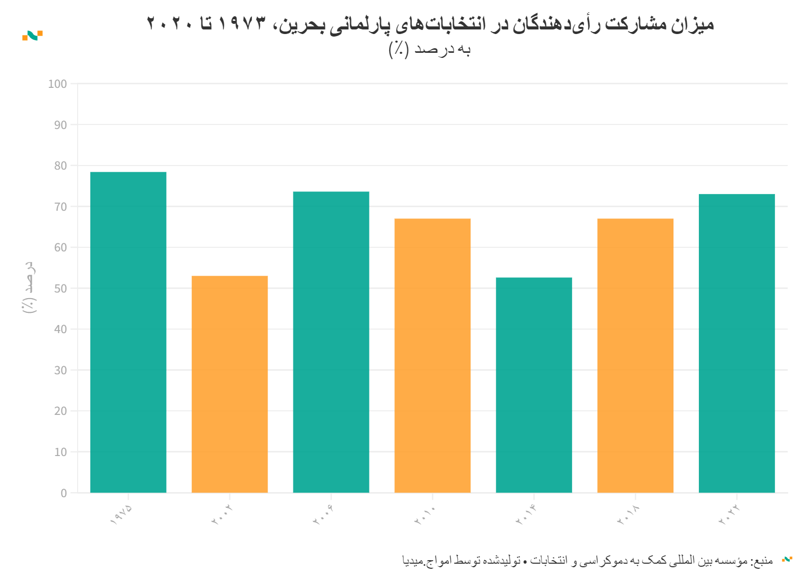 میزان مشارکت رأی‌دهندگان در انتخابات‌های پارلمانی بحرین، ۱۹۷۳ تا ۲۰۲۰