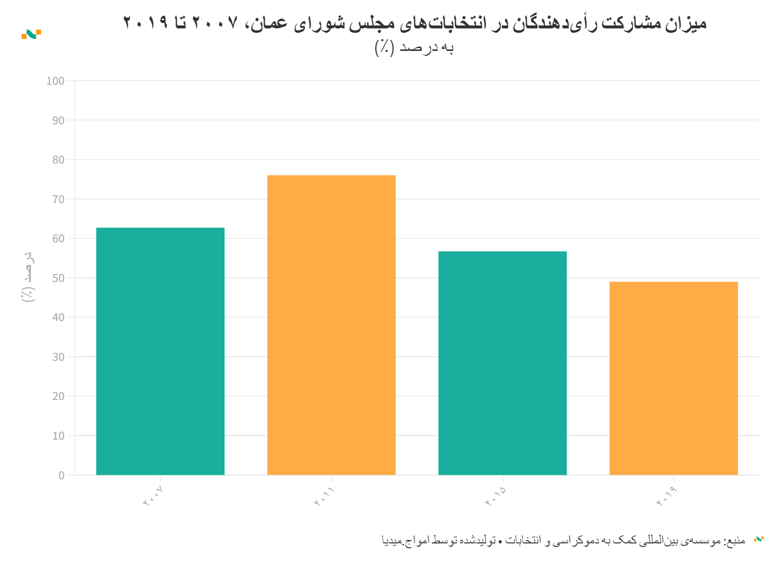 میزان مشارکت رأی‌دهندگان در انتخابات‌های مجلس شورای عمان، ۲۰۰۷ تا ۲۰۱۹