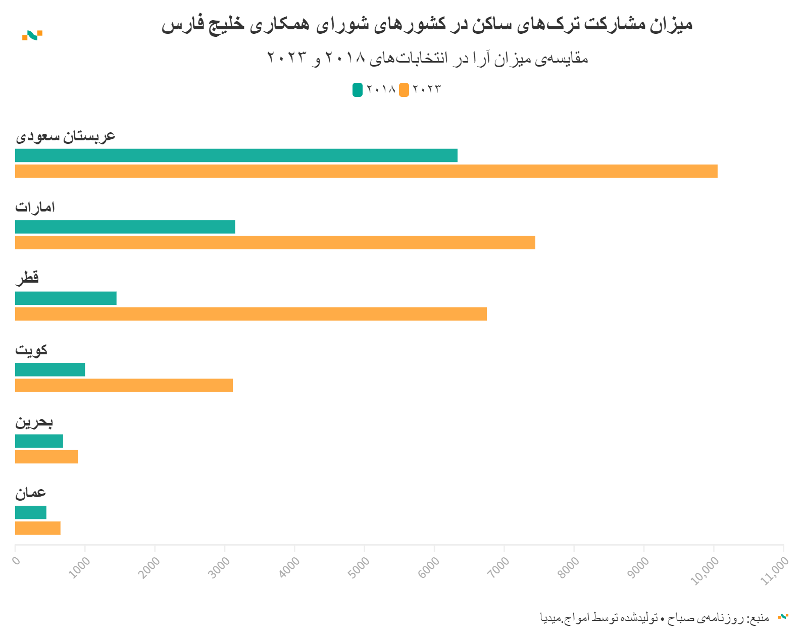 میزان مشارکت ترک‌های ساکن در کشورهای شورای همکاری خلیج فارس