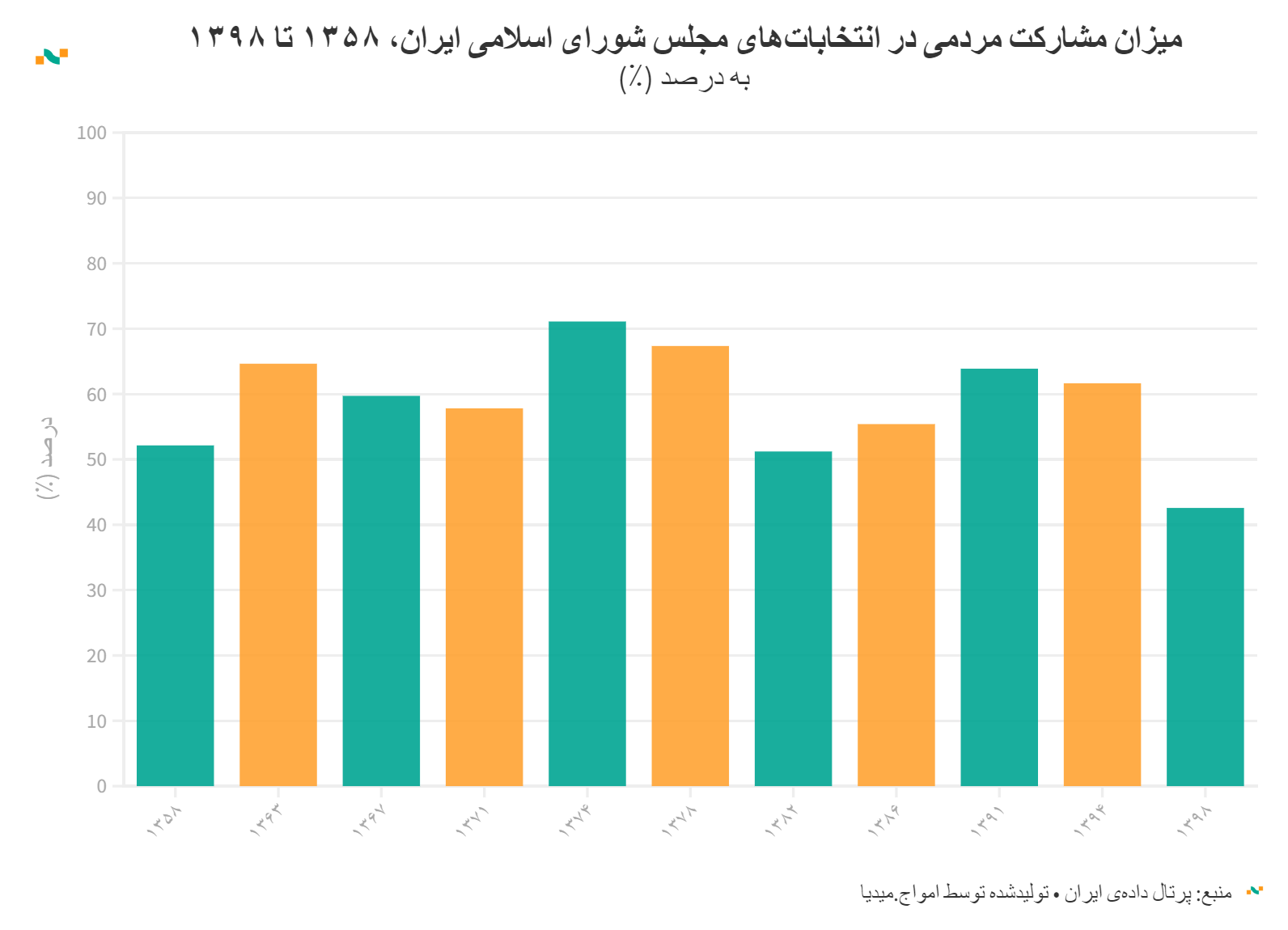 میزان مشارکت مردمی در انتخابات‌های مجلس شورای اسلامی ایران، ۱۳۵۸ تا ۱۳۹۸