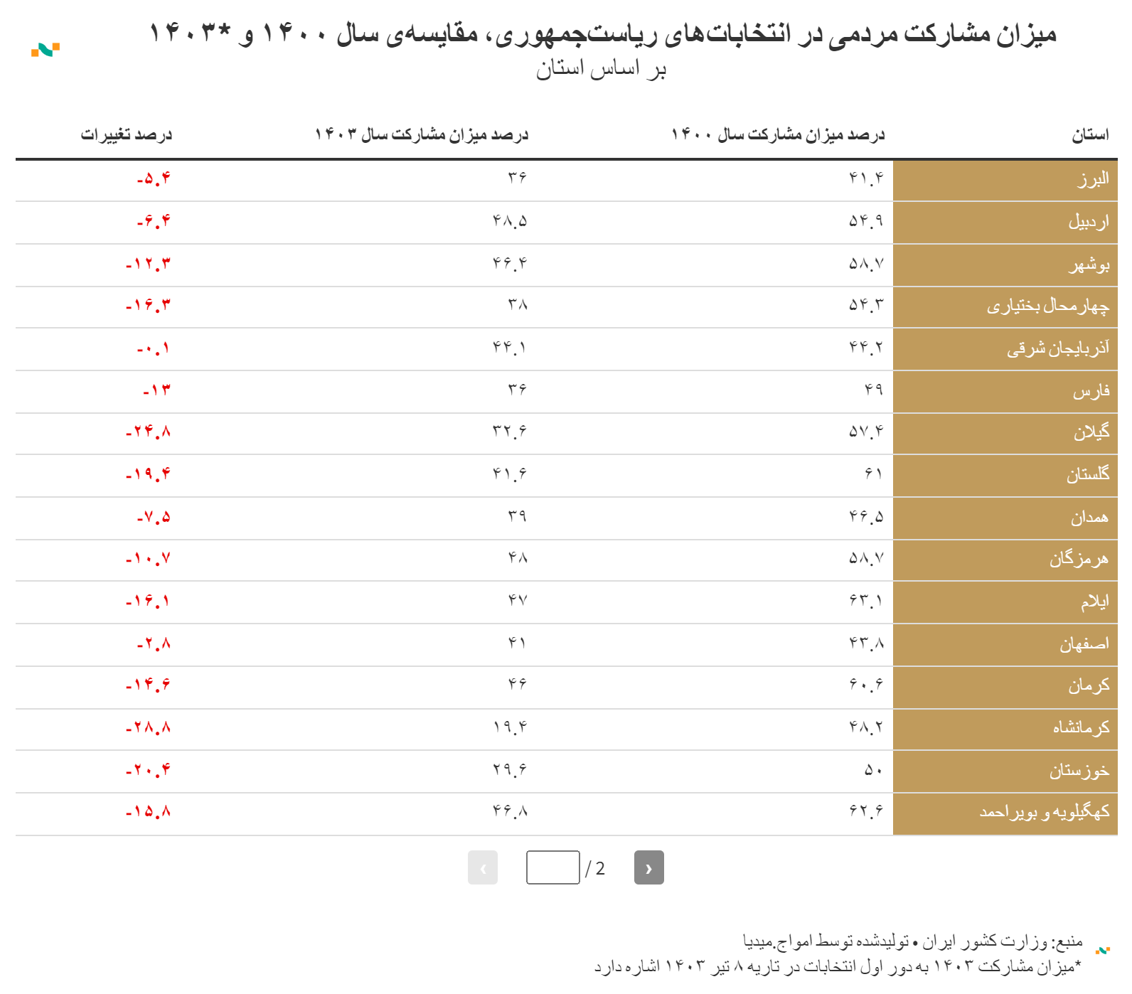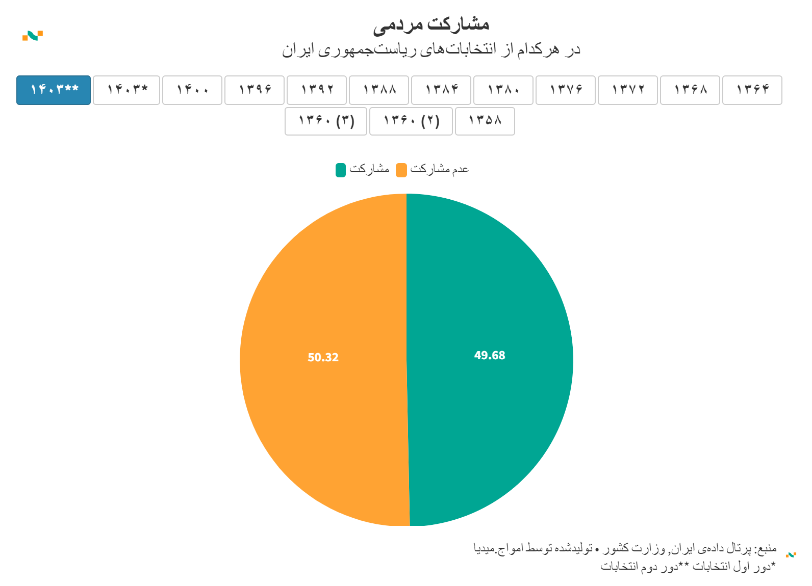 میزان مشارکت مردمی در انتخابات‌های ریاست‌جمهوری، مقایسه‌ی سال ۱۴۰۰ و *۱۴۰۳