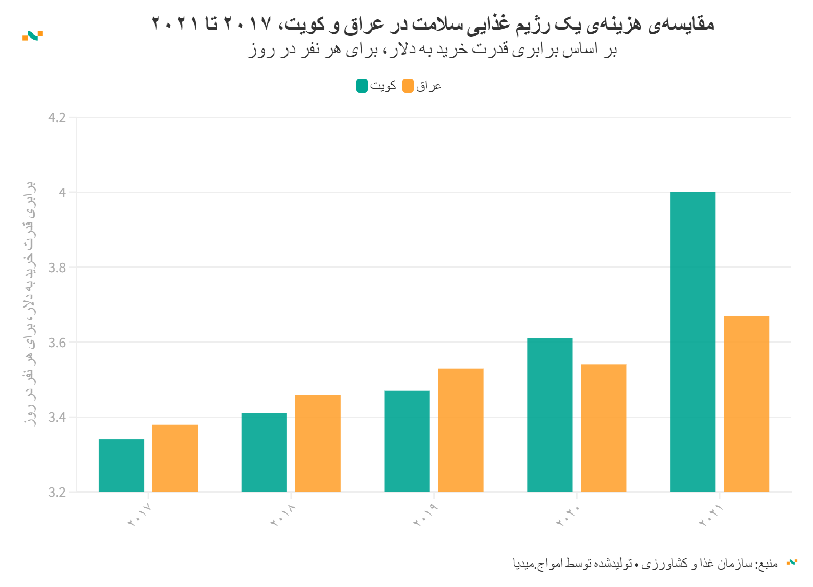 مقایسه‌ی هزینه‌ی یک رژیم غذایی سلامت در عراق و کویت، ۲۰۱۷ تا ۲۰۲۱