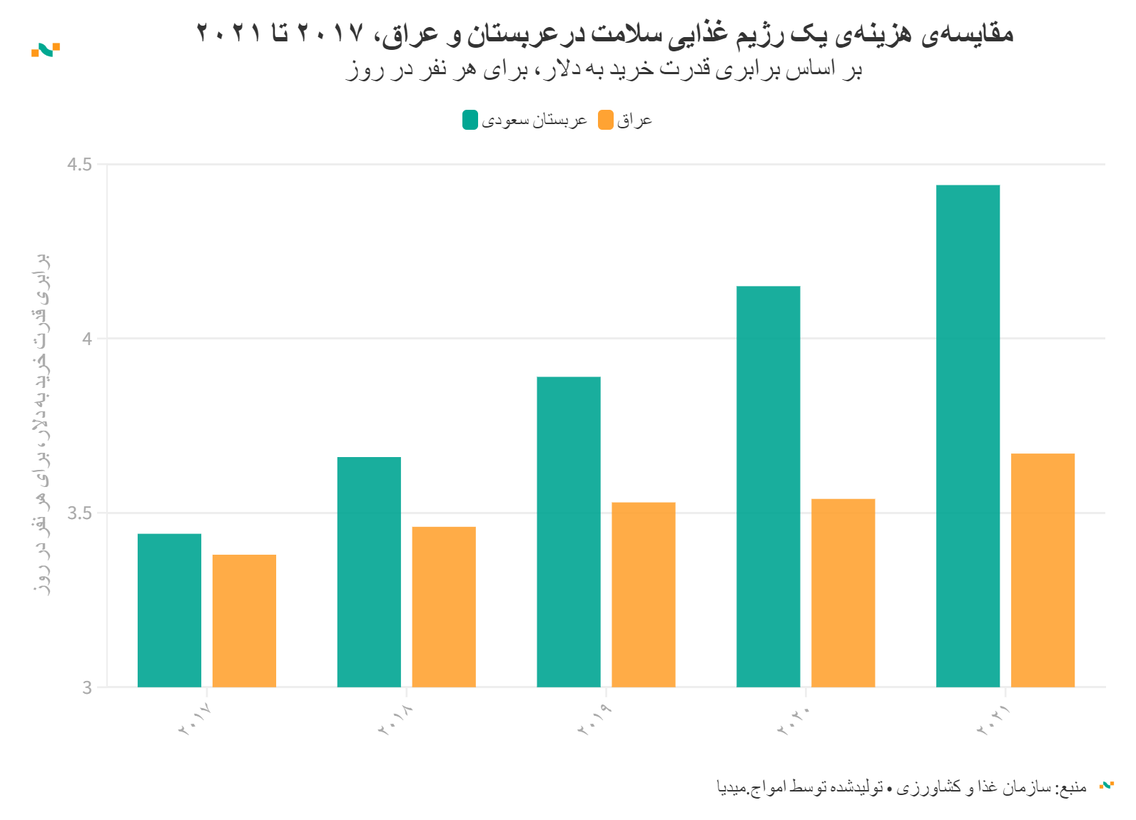 مقایسه‌ی هزینه‌ی یک رژیم غذایی سلامت درعربستان و عراق، ۲۰۱۷ تا ۲۰۲۱