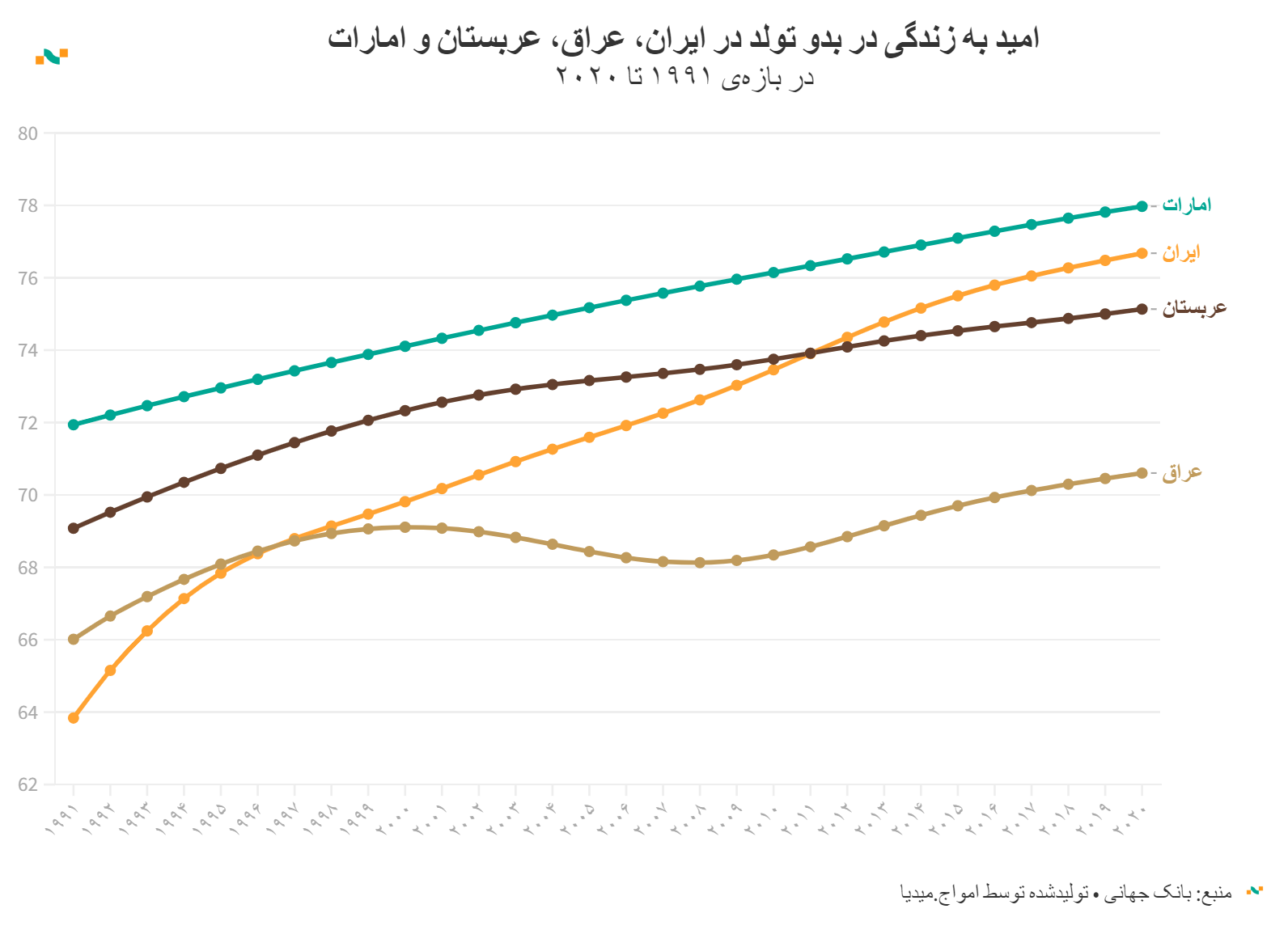 امید به زندگی در بدو تولد در ایران، عراق، عربستان و امارات