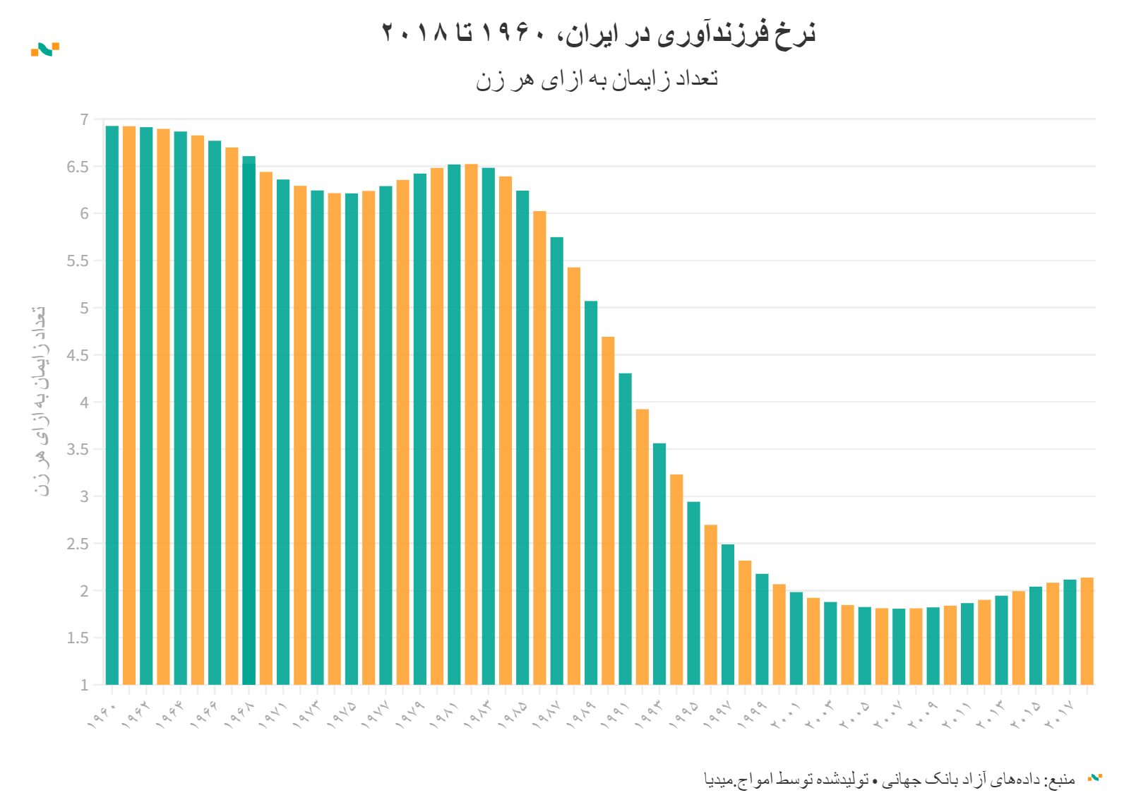 نرخ فرزندآوری در ایران، ۱۹۶۰ تا ۲۰۱۸