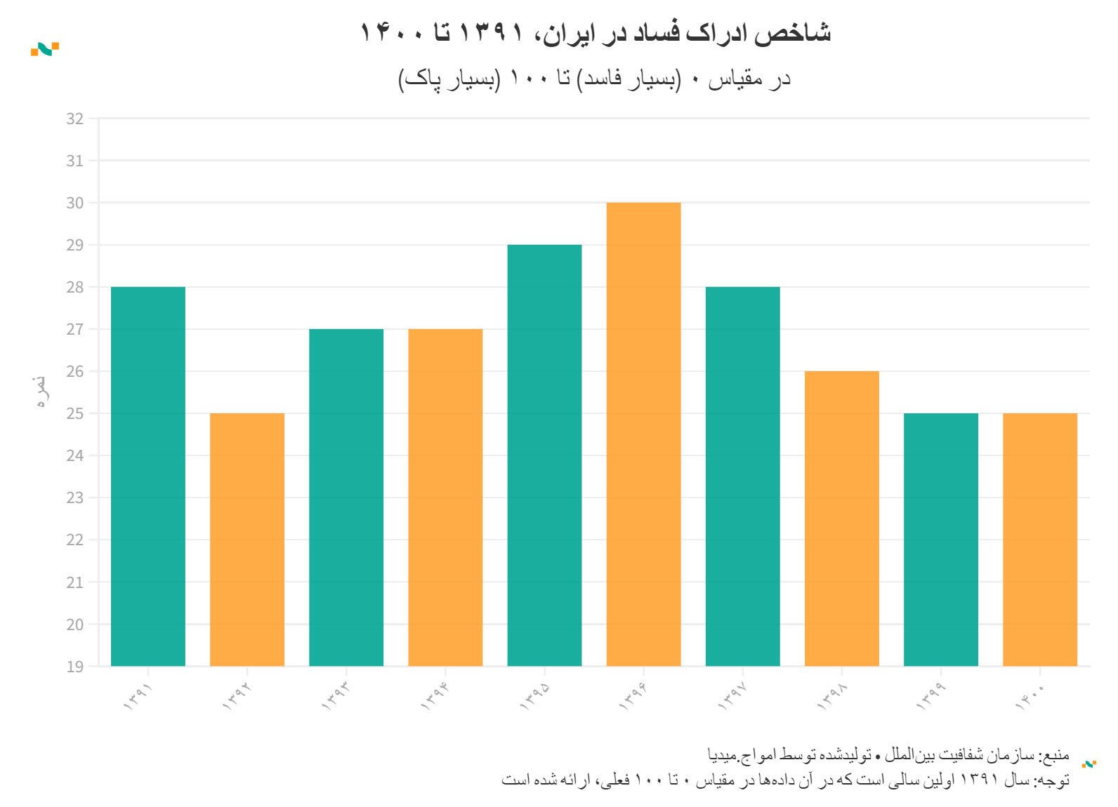 شاخص ادراک فساد در ایران، ۱۳۹۱ تا ۱۴۰۰