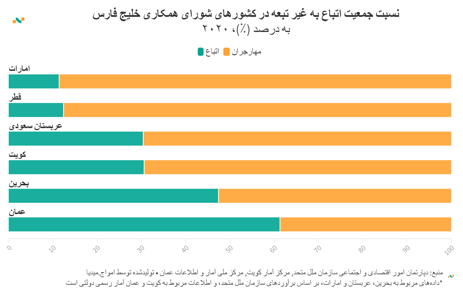 نسبت جمعیت اتباع به غیر تبعه در کشورهای شورای همکاری خلیج فارس