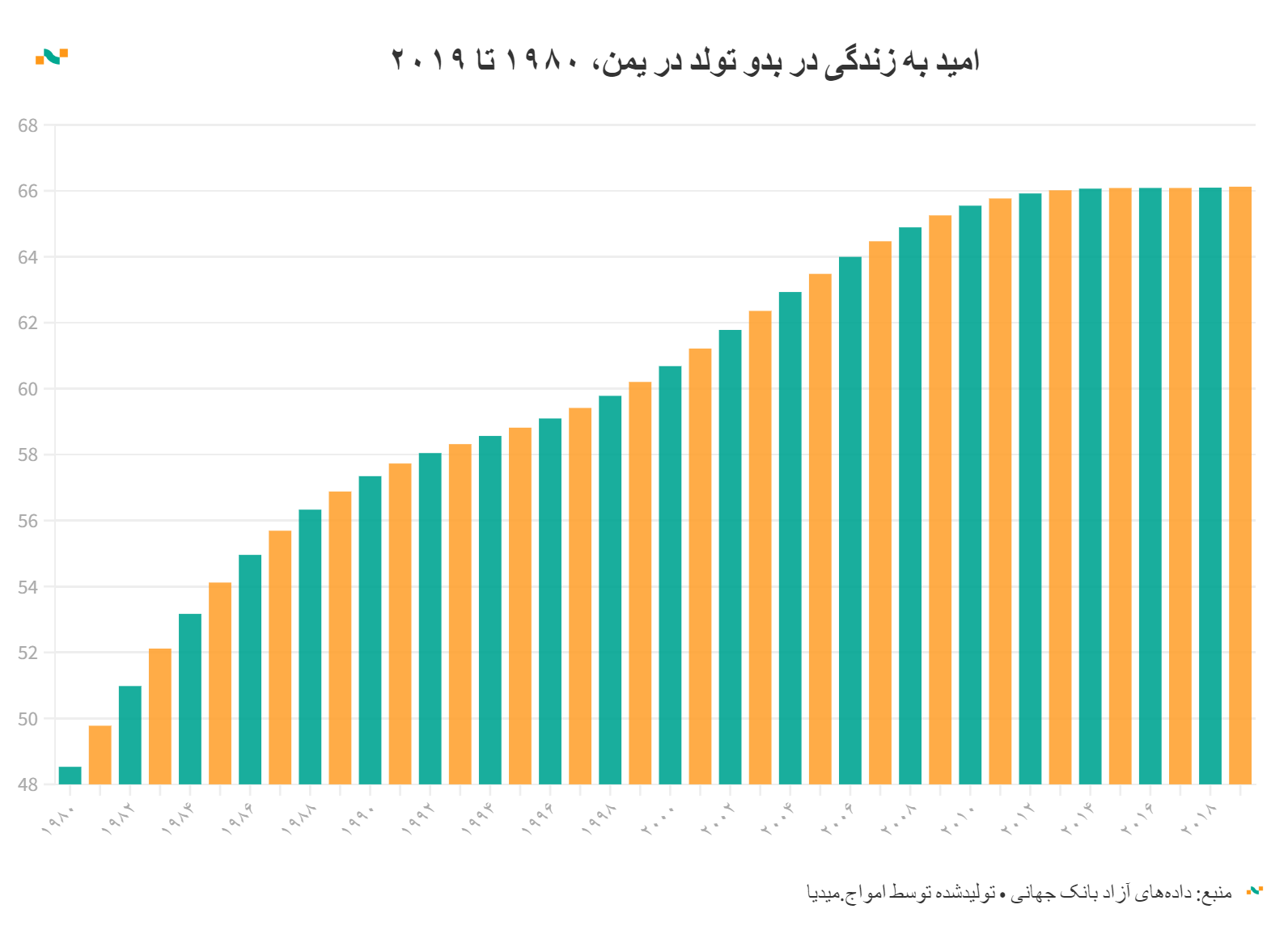 امید به زندگی در بدو تولد در یمن، ۱۹۸۰ تا ۲۰۱۹