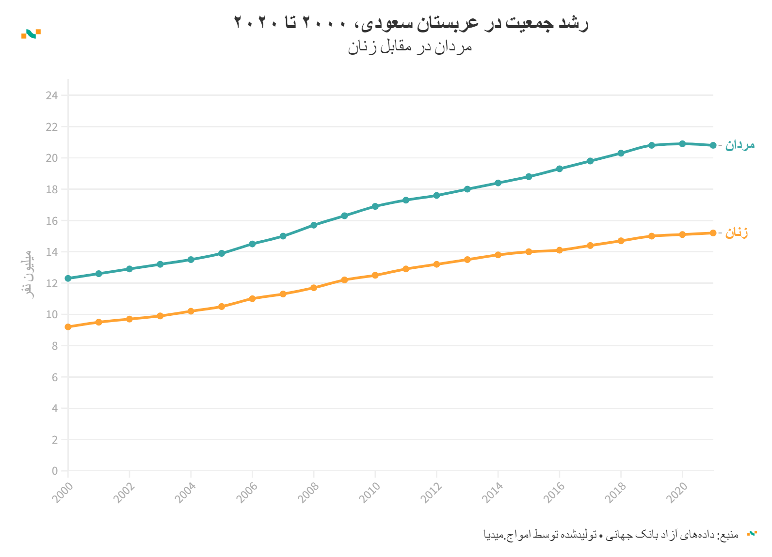 رشد جمعیت در عربستان سعودی، ۲۰۰۱ تا ۲۰۲۱
