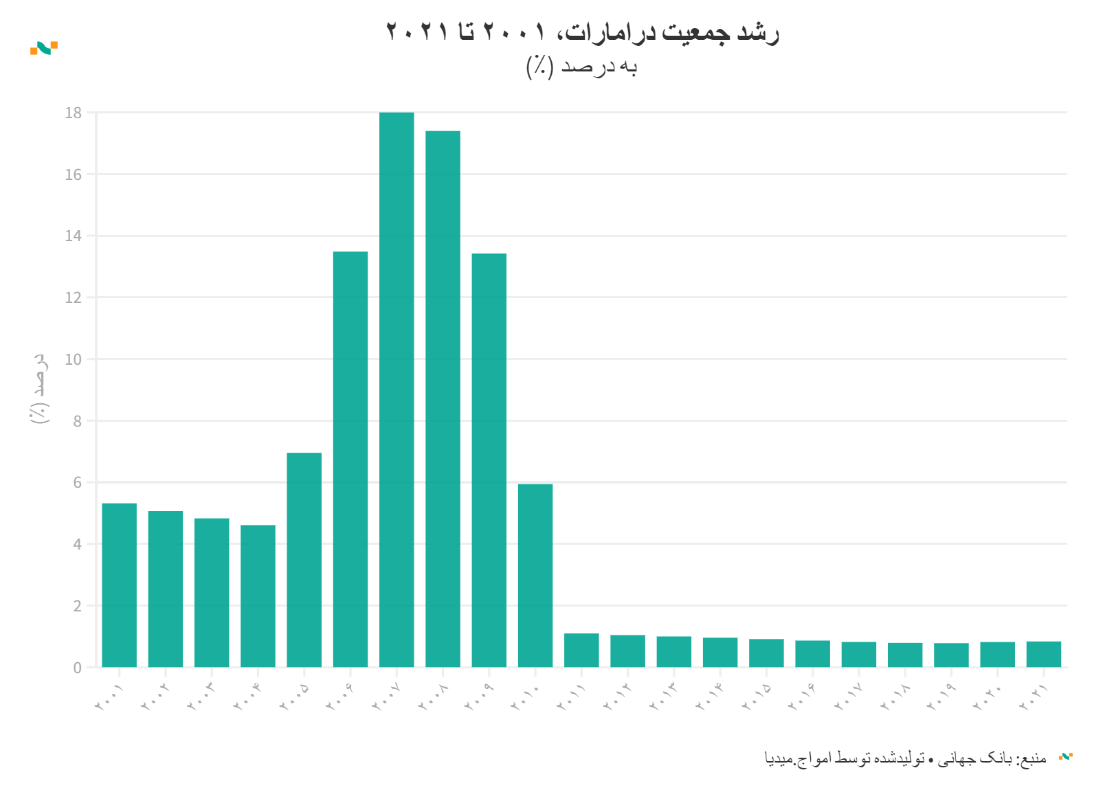 رشد جمعیت درامارات، ۲۰۰۱ تا ۲۰۲۱