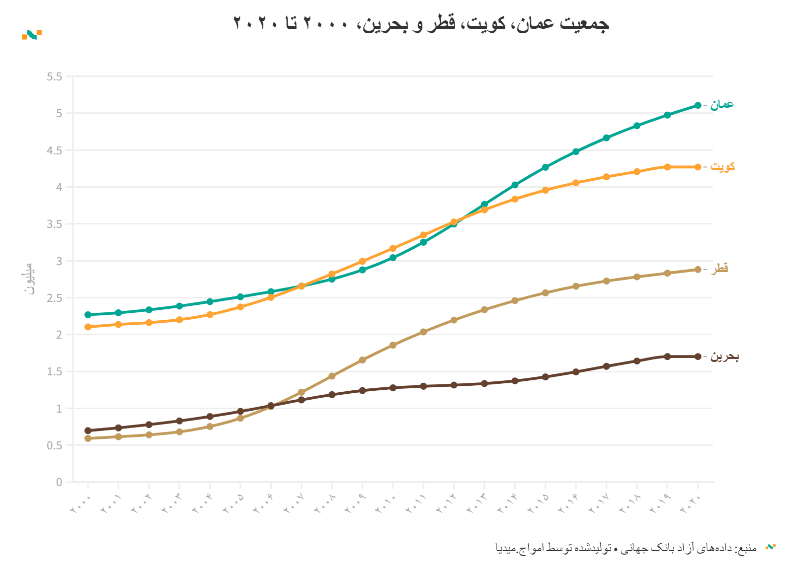 جمعیت عمان، کویت، قطر و بحرین، ۲۰۰۰ تا ۲۰۲۰