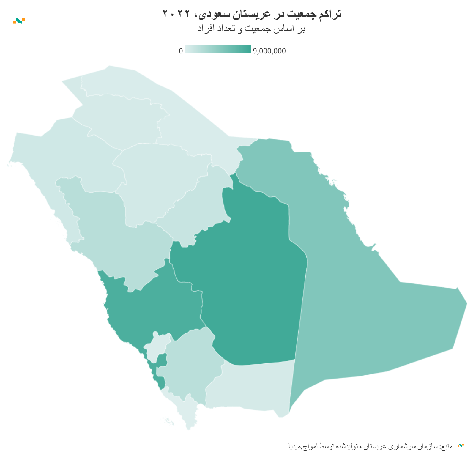 تراکم جمعیت در عربستان سعودی، ۲۰۲۲