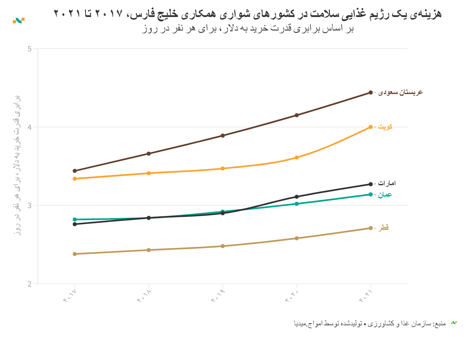 هزینه‌ی یک رژیم غذایی سلامت در کشورهای شواری همکاری خلیج فارس، ۲۰۱۷ تا ۲۰۲۱