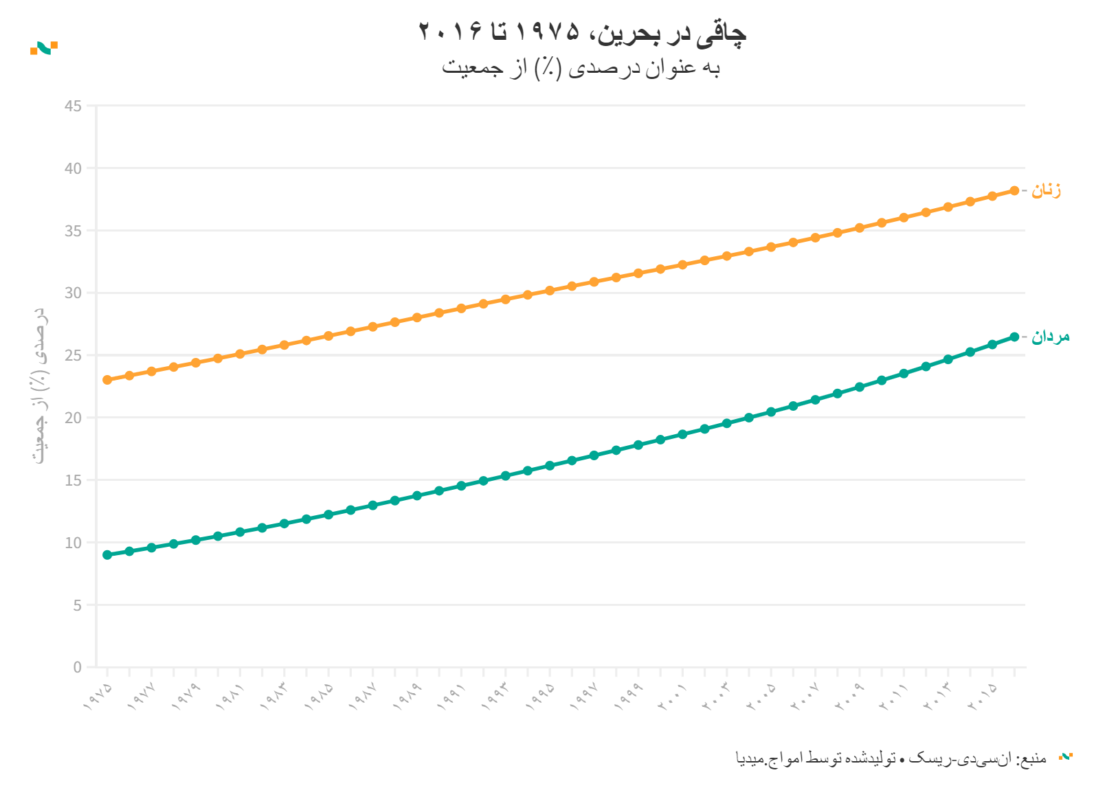 چاقی در بحرین، ۱۹۷۵ تا ۲۰۱۶