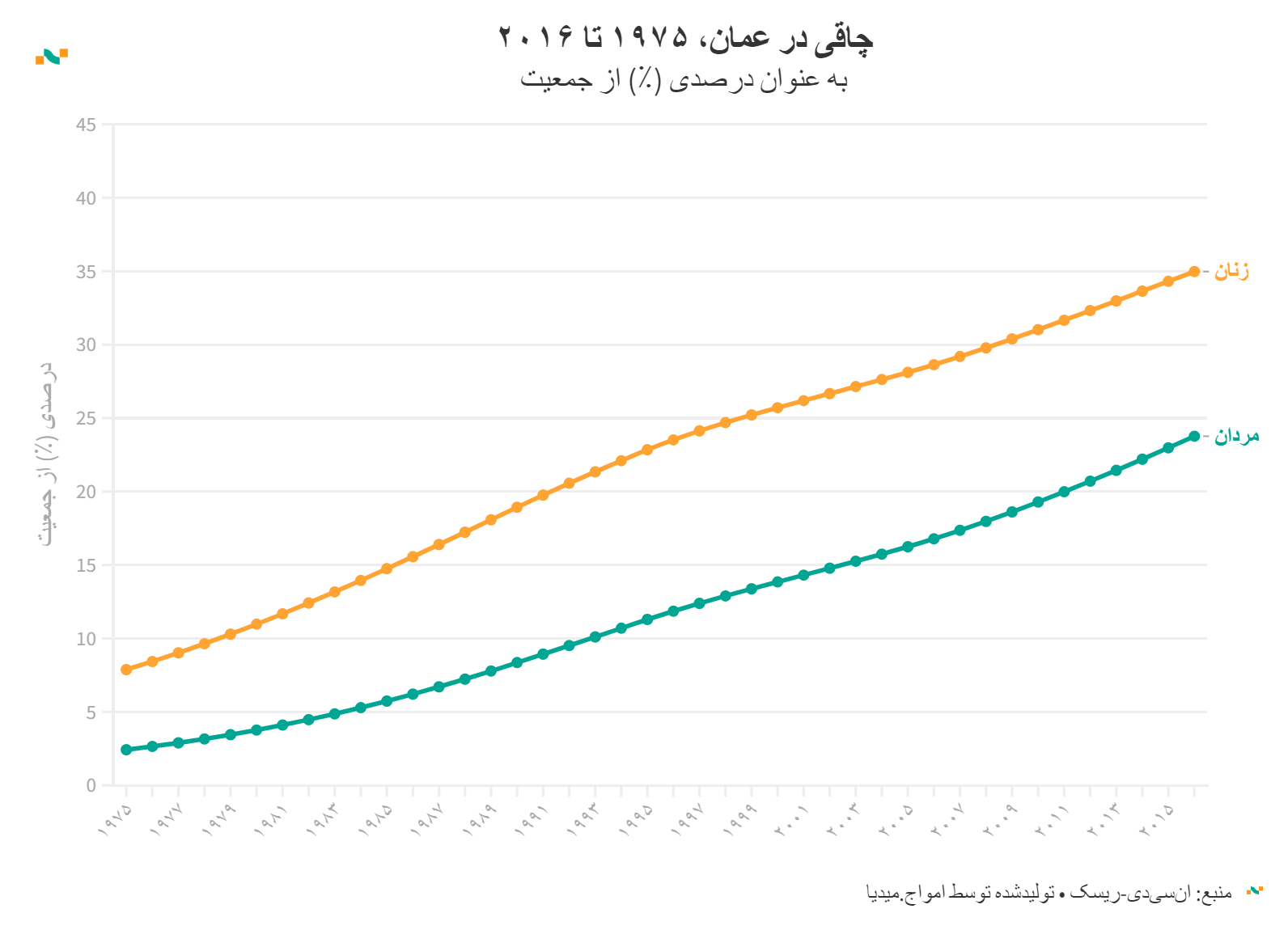 چاقی در عمان، ۱۹۷۵ تا ۲۰۱۶
