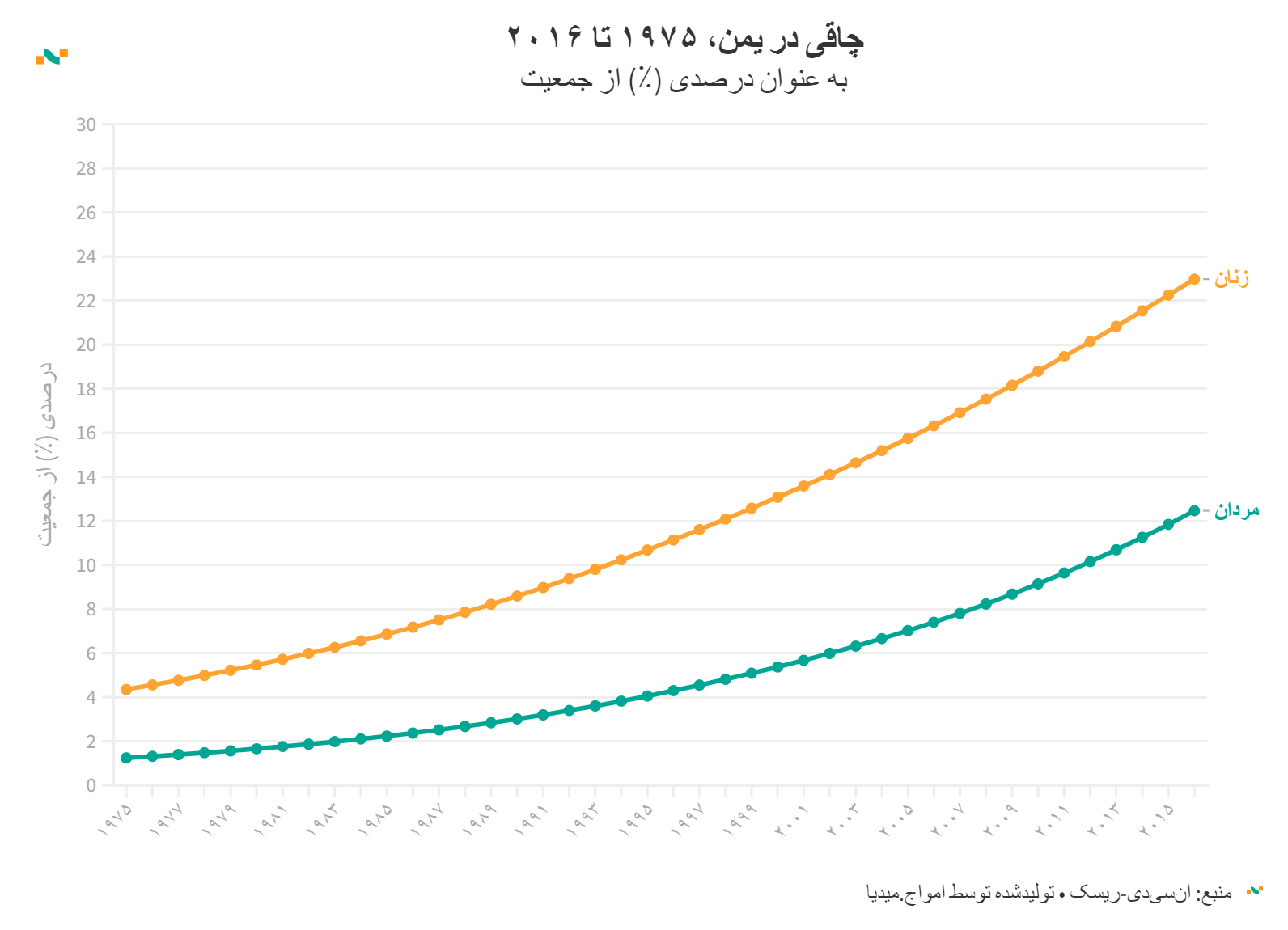 چاقی در یمن، ۱۹۷۵ تا ۲۰۱۶