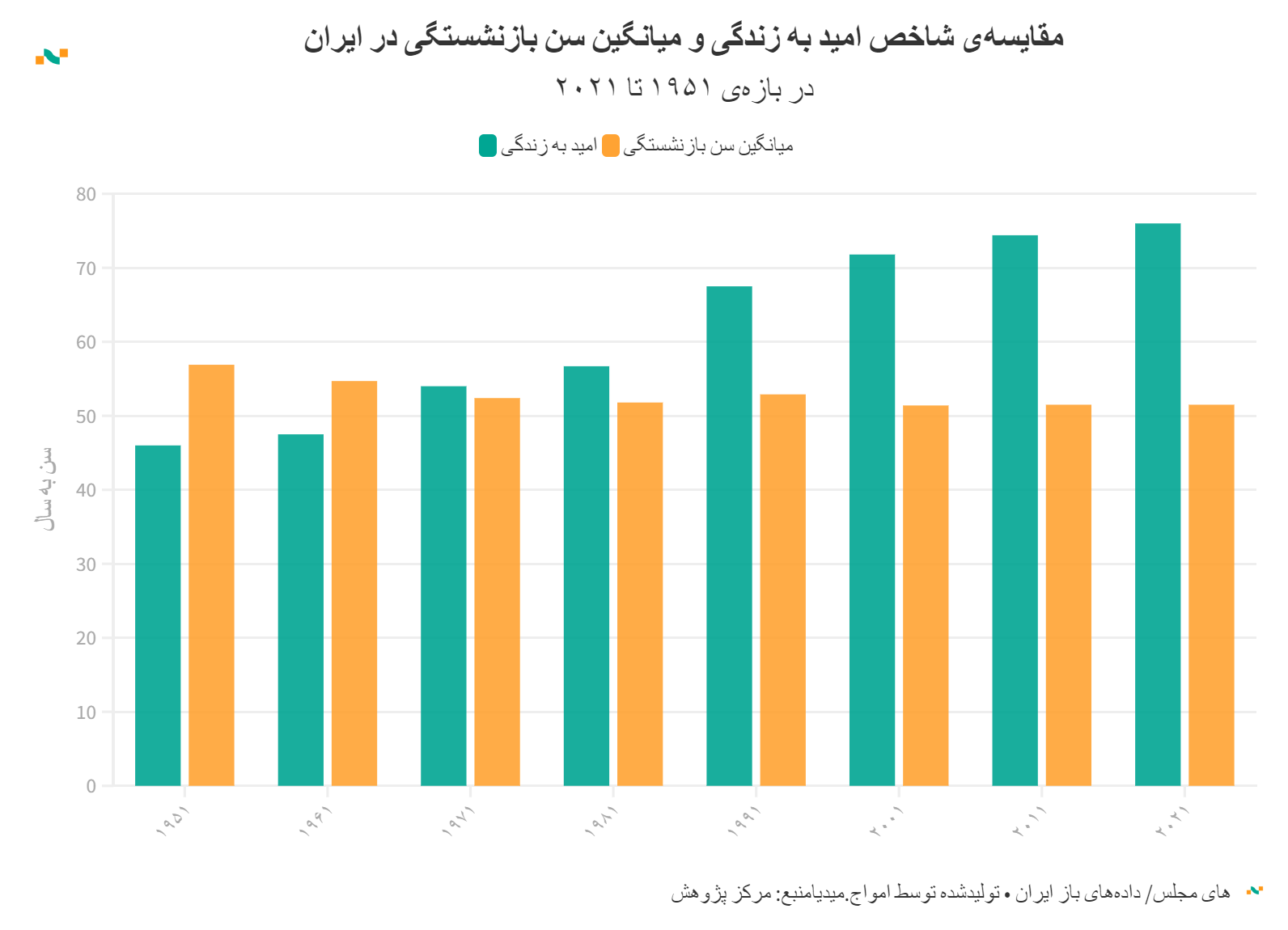 مقایسه‌ی شاخص امید به زندگی و میانگین سن بازنشستگی در ایران