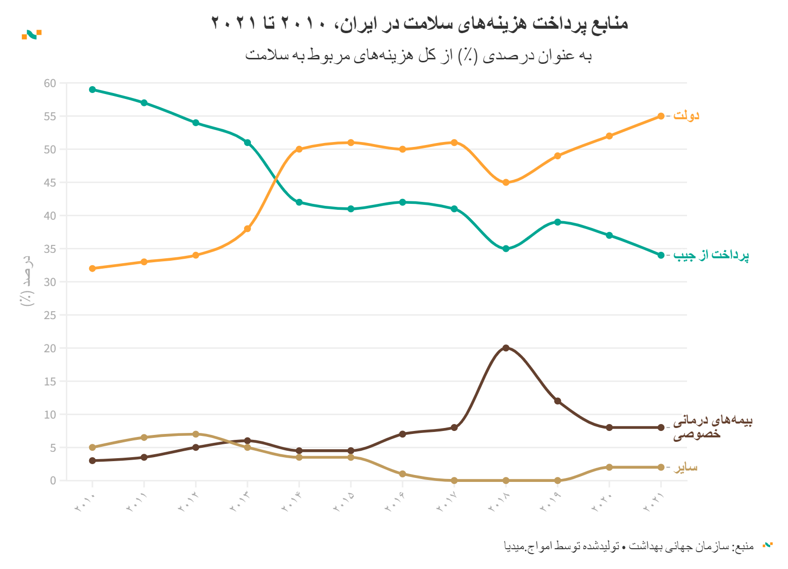 منابع پرداخت هزینه‌های سلامت در ایران، ۲۰۱۰ تا ۲۰۲۱