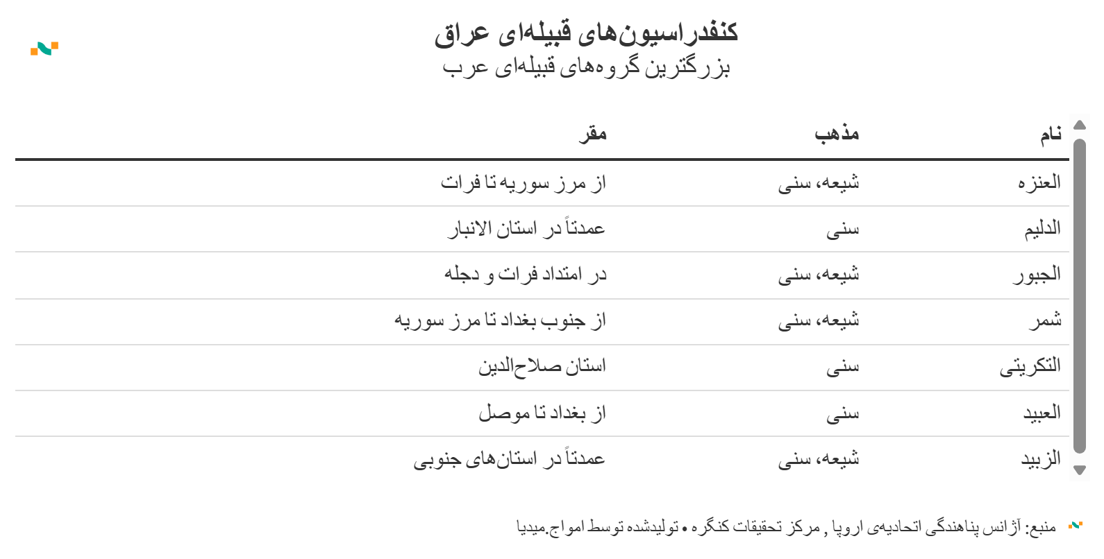 ترکیب‌ اصلی‌ترین گروه‌های قومی عراق