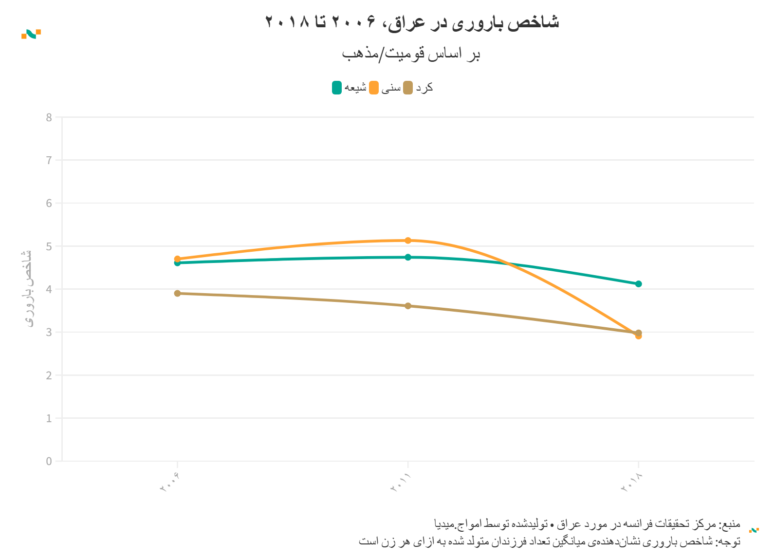 شاخص باروری در عراق، ۲۰۰۶ تا ۲۰۱۸