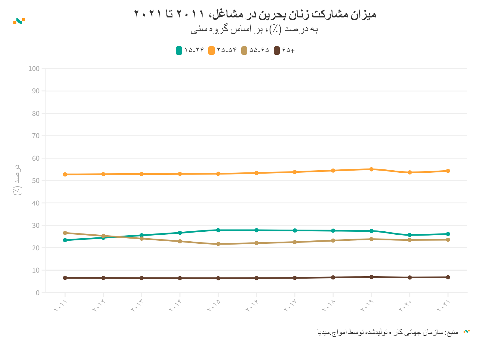 میزان مشارکت زنان بحرین در مشاغل، ۲۰۱۱ تا ۲۰۲۱