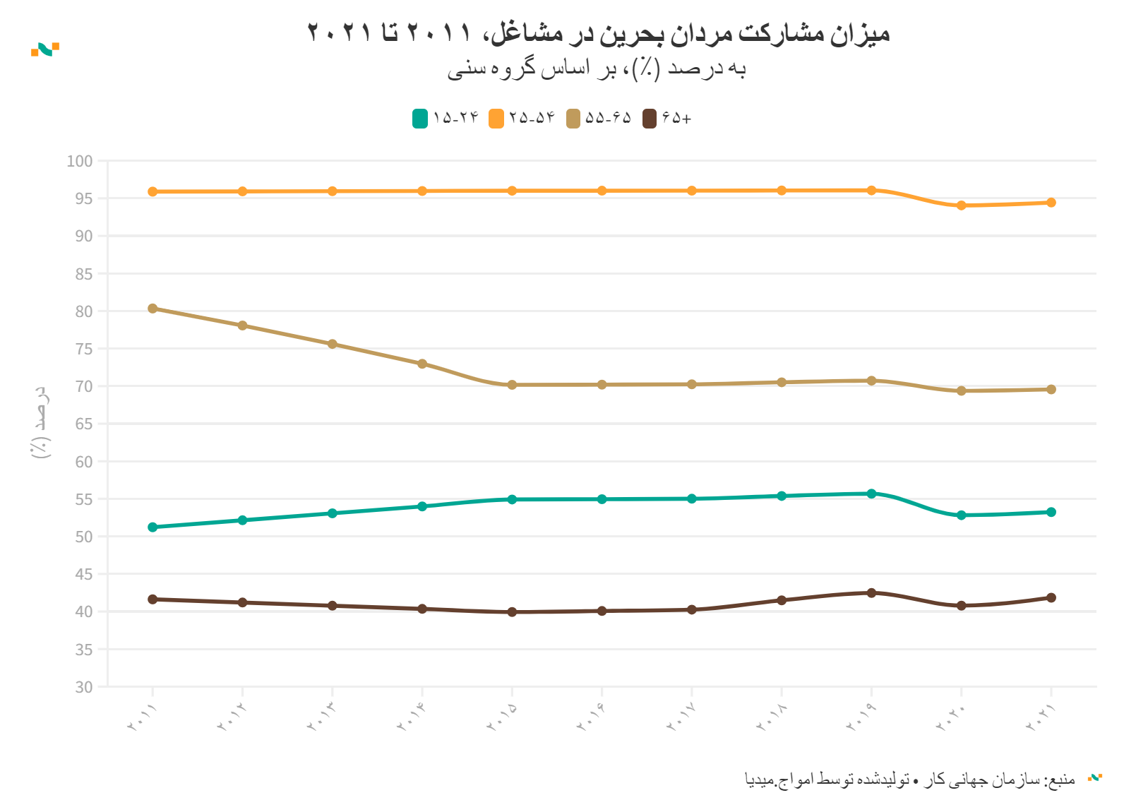 میزان مشارکت مردان بحرین در مشاغل، ۲۰۱۱ تا ۲۰۲۱