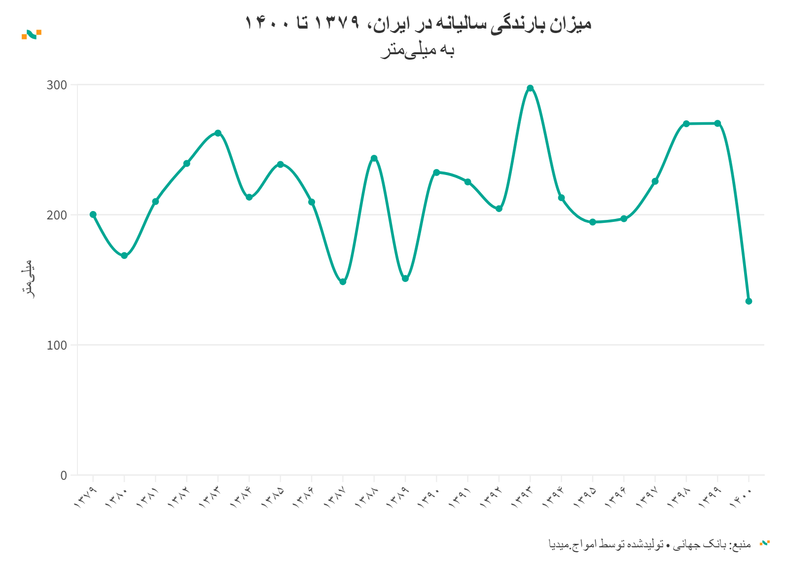 میزان بارندگی سالیانه در ایران، ۱۳۷۹ تا ۱۴۰۰