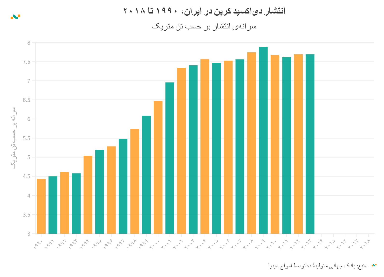 انتشار دی‌اکسید کربن در ایران، ۱۹۹۰ تا ۲۰۲۰
