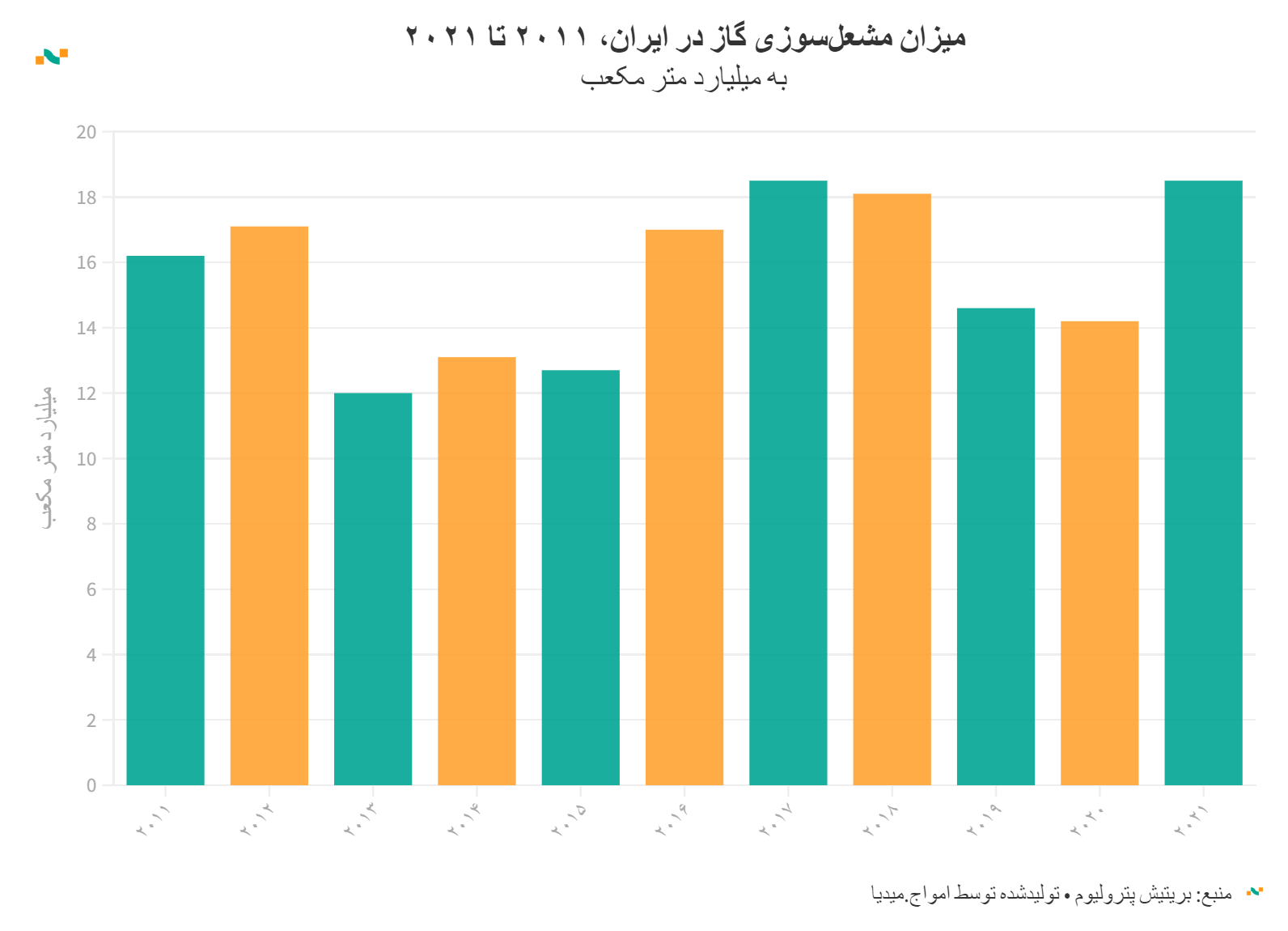 میزان مشعل‌سوزی گاز در ایران، ۲۰۱۱ تا ۲۰۲۱