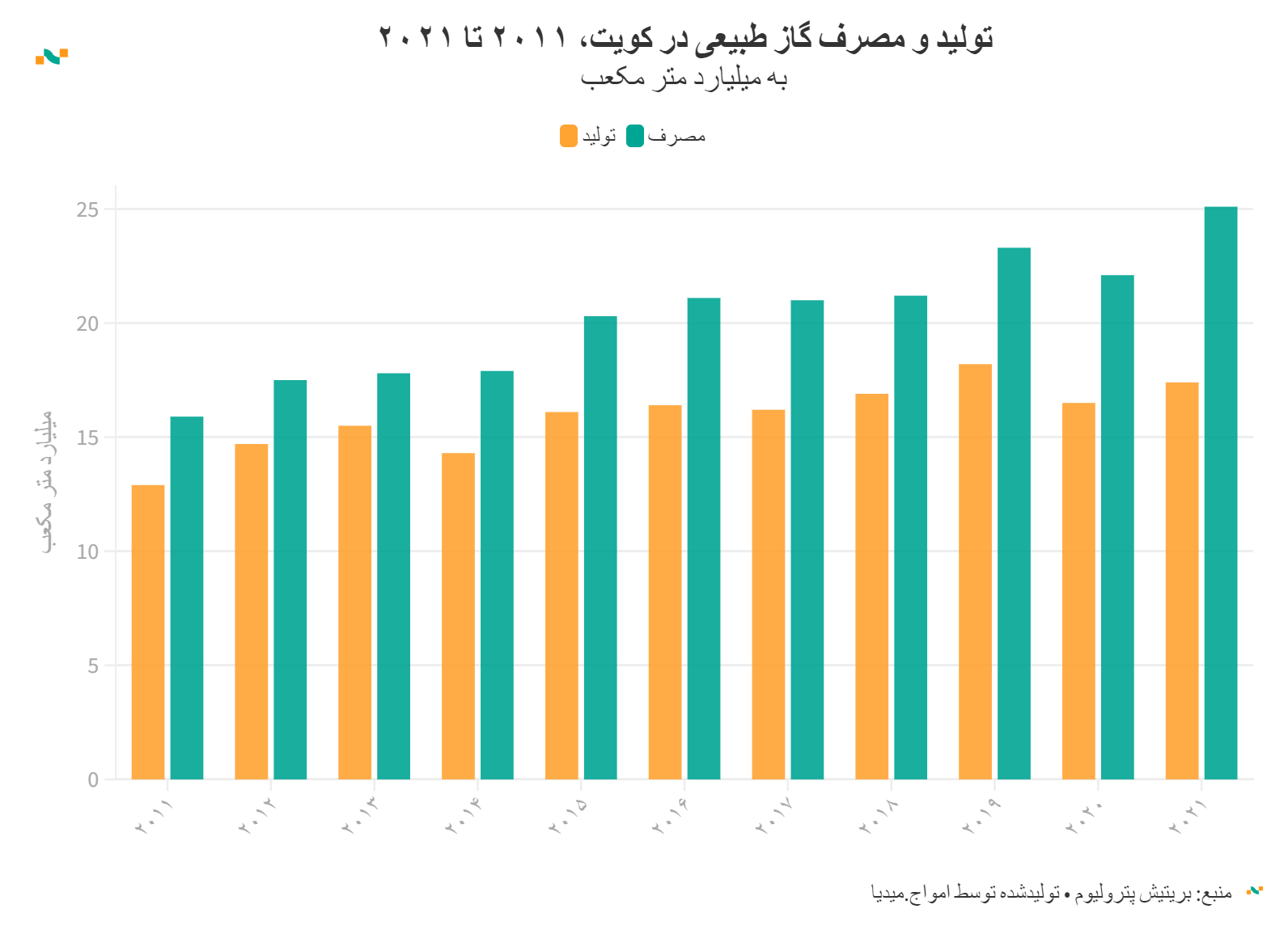 تولید و مصرف گاز طبیعی در کویت، ۲۰۱۱ تا ۲۰۲۱