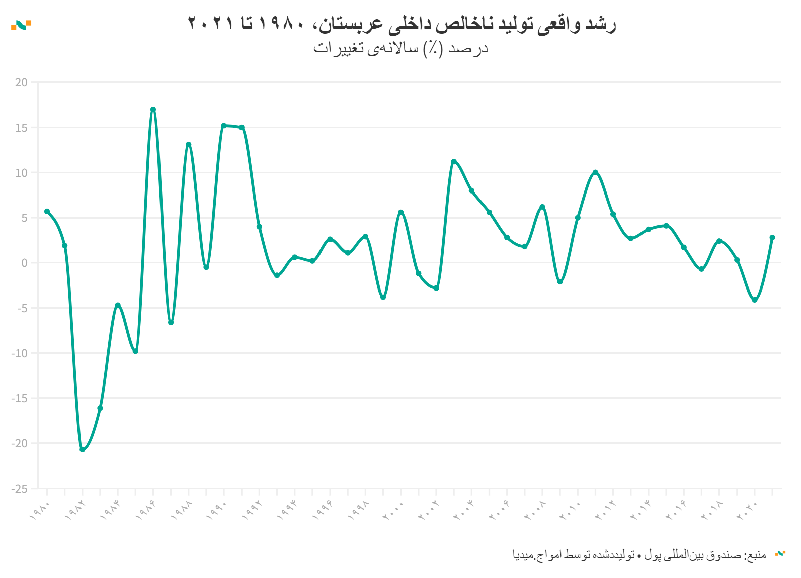 رشد واقعی تولید ناخالص داخلی عربستان، ۱۹۸۰ تا ۲۰۲۱