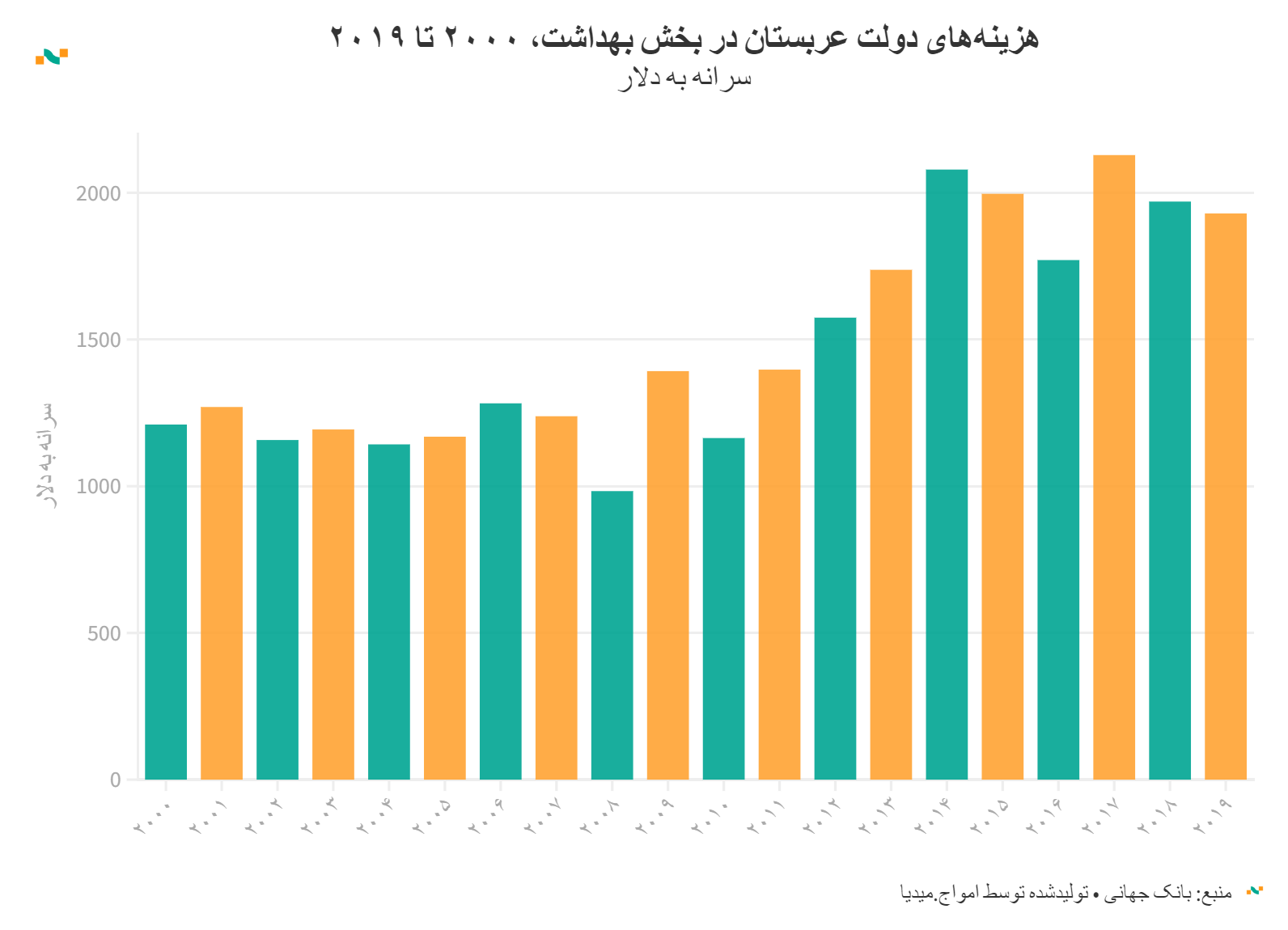 هزینه‌های دولت عربستان در بخش بهداشت، ۲۰۰۰ تا ۲۰۱۹