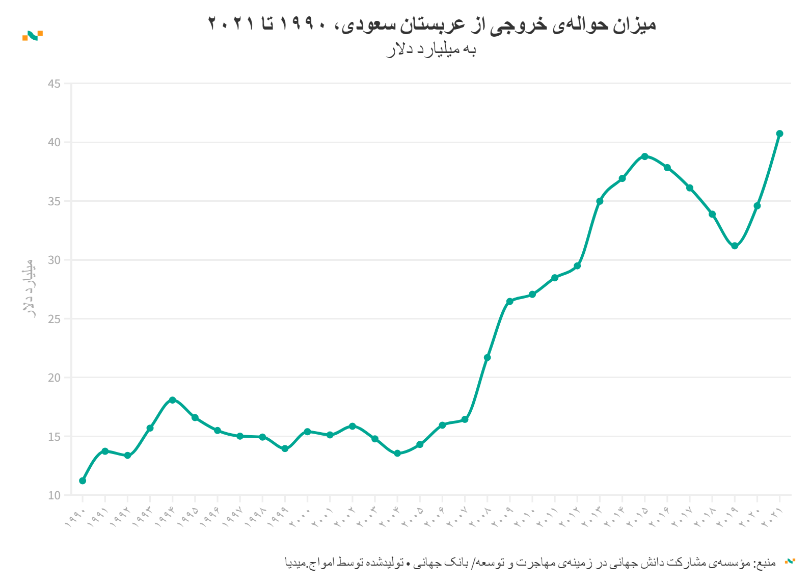 میزان حواله‌ی خروجی از عربستان سعودی، ۱۹۹۰ تا ۲۰۲۱
