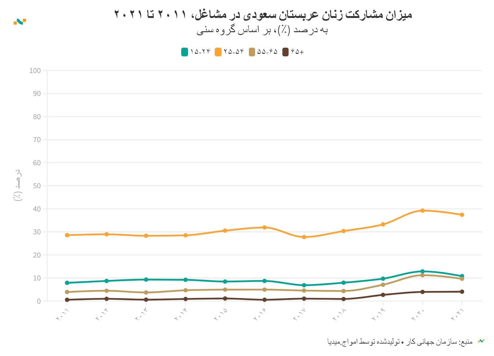میزان مشارکت زنان عربستان سعودی در مشاغل، ۲۰۱۱ تا ۲۰۲۱