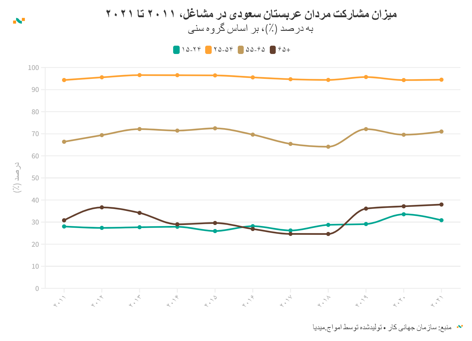 میزان مشارکت مردان عربستان سعودی در مشاغل، ۲۰۱۱ تا ۲۰۲۱