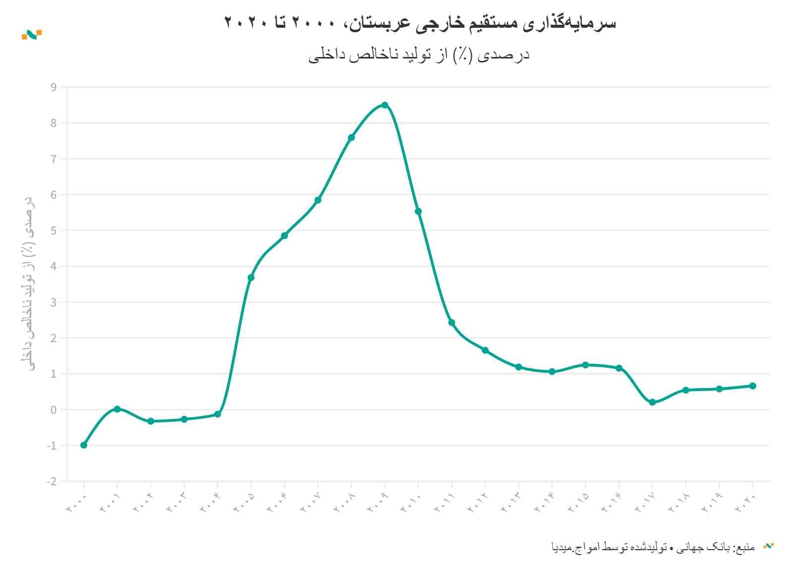 سرمایه‌گذاری مستقیم خارجی عربستان، ۲۰۰۰ تا ۲۰۲۰