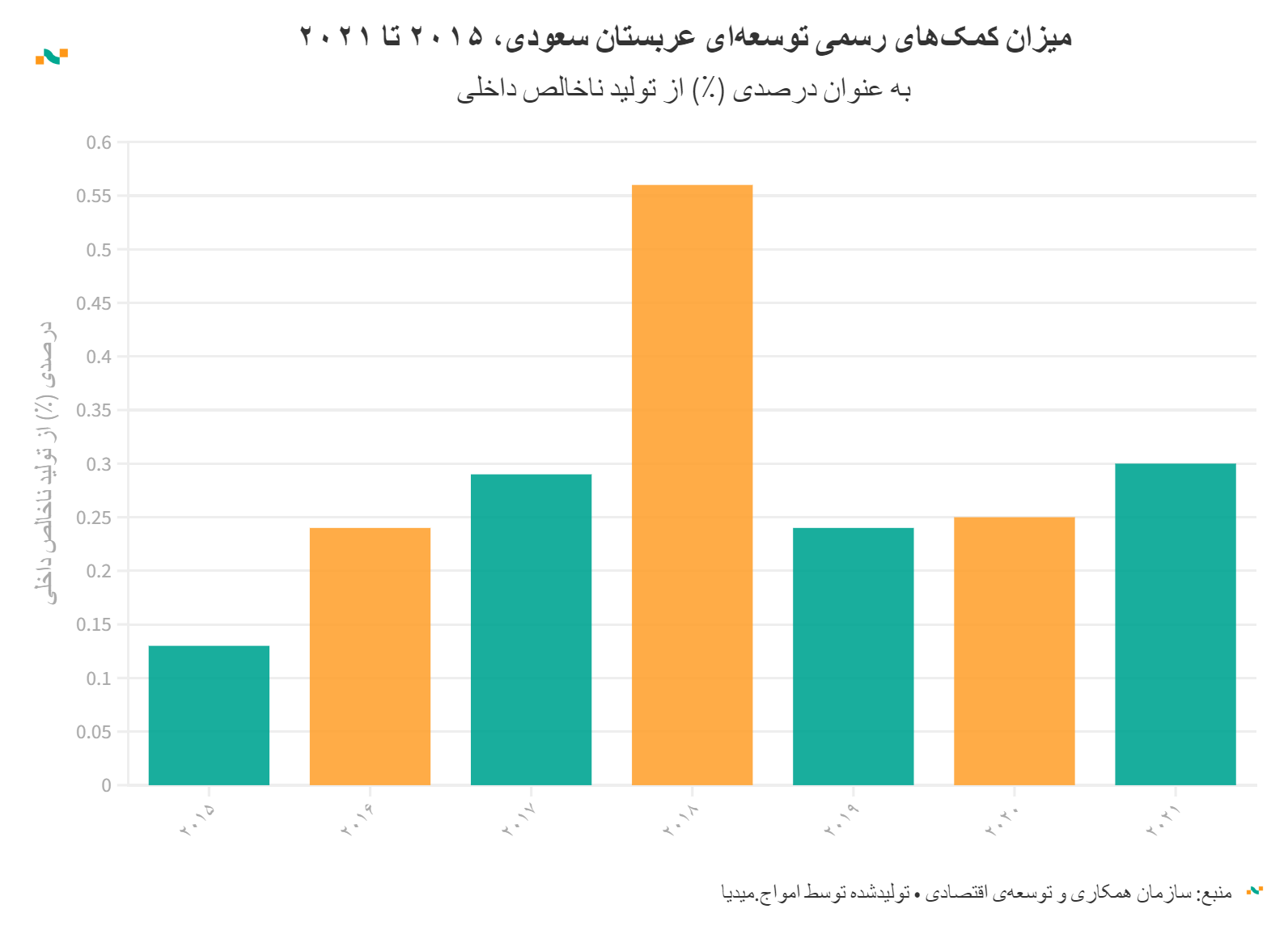 میزان کمک‌های رسمی توسعه‌ای عربستان سعودی، ۲۰۱۵ تا ۲۰۲۱