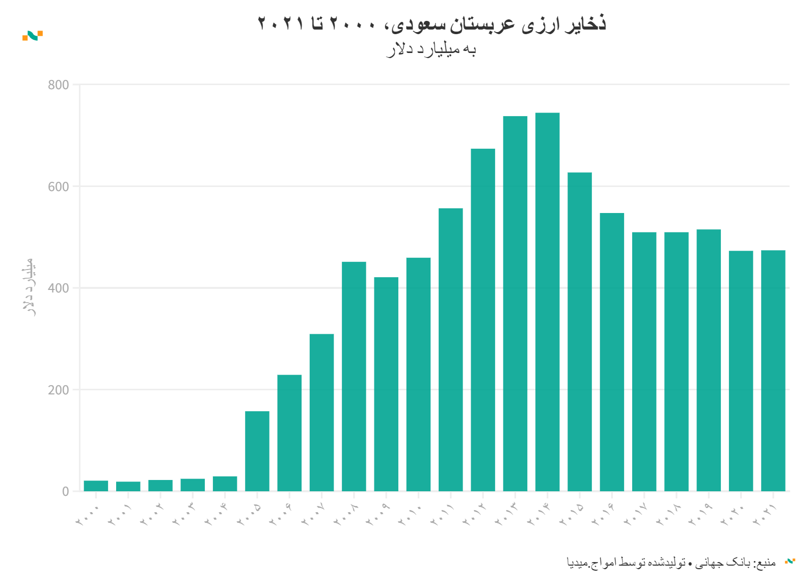 ذخایر ارزی  عربستان سعودی، ۲۰۰۰ تا ۲۰۲۱