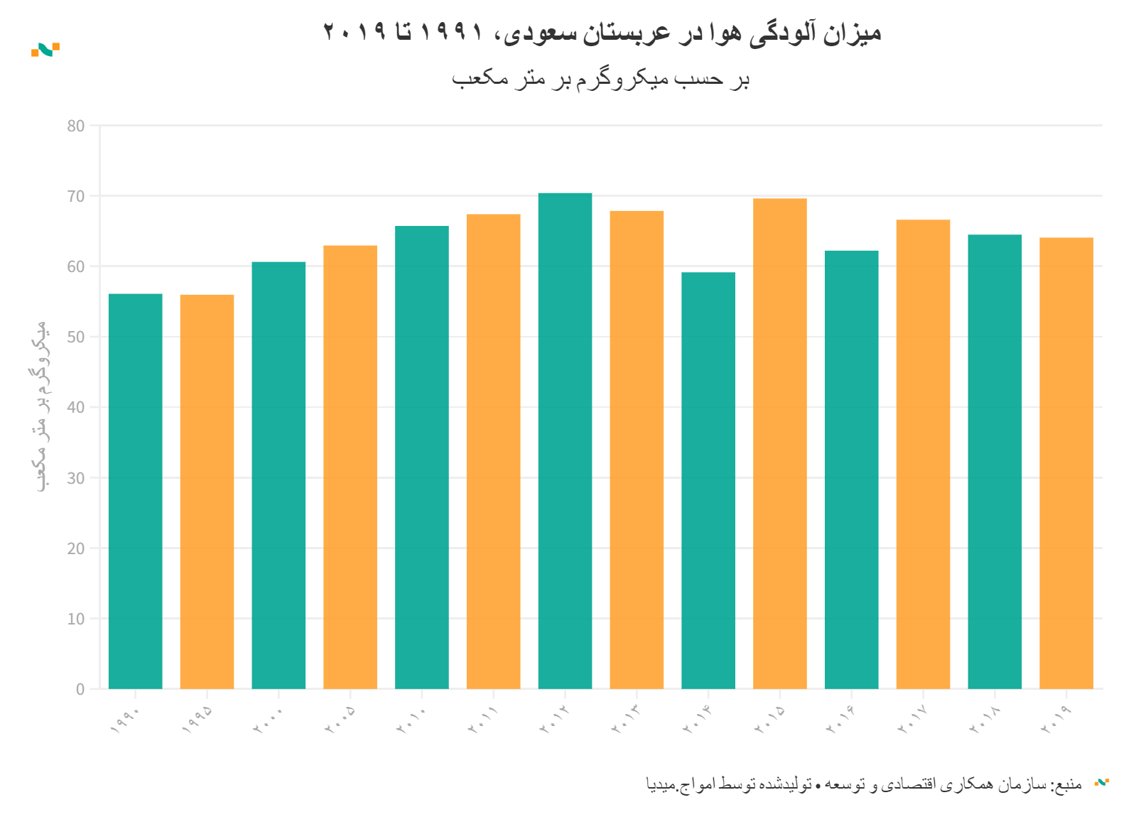 میزان آلودگی هوا در عربستان سعودی، ۱۹۹۱ تا ۲۰۱۹