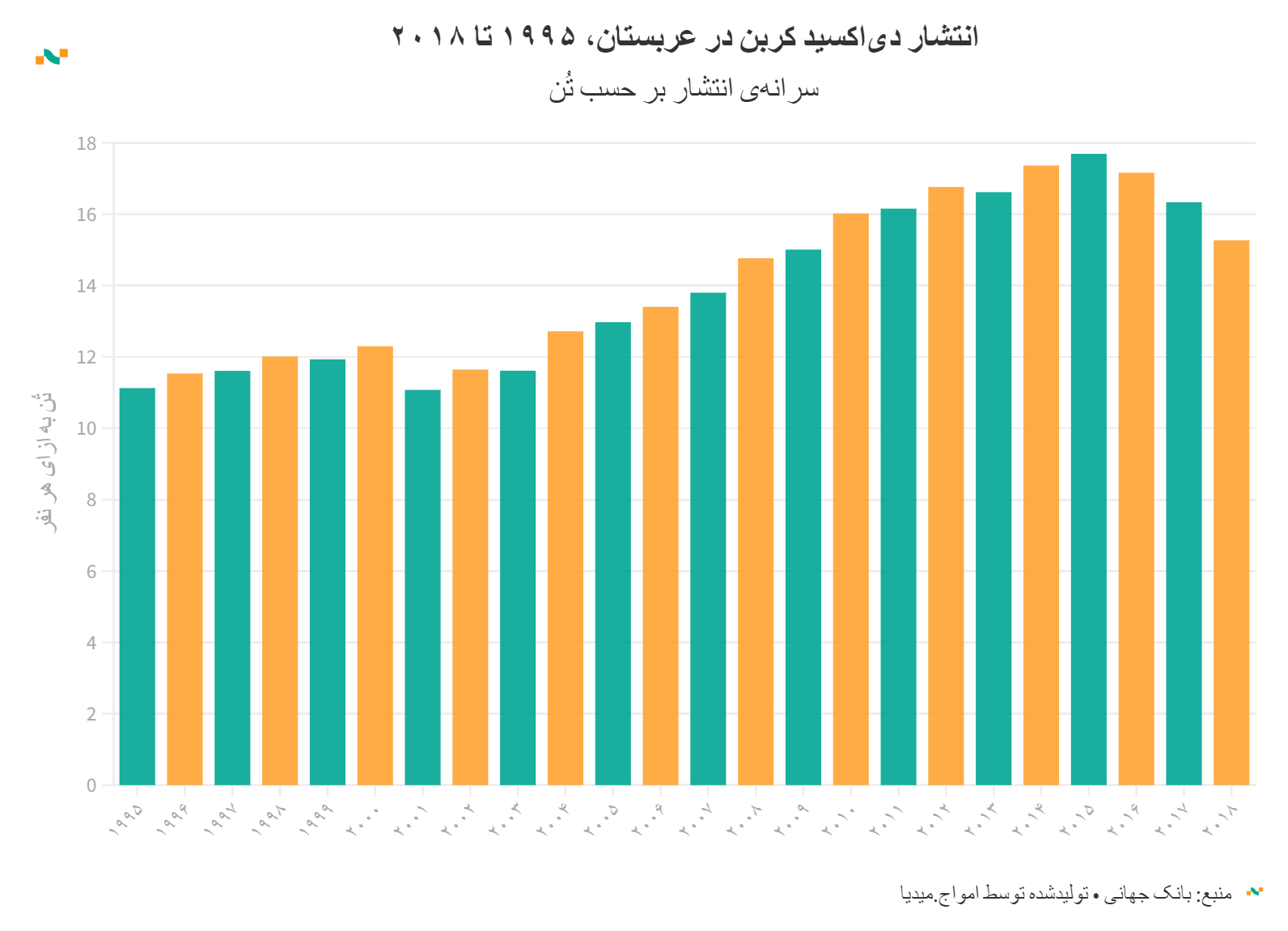 انتشار دی‌اکسید کربن در عربستان، ۱۹۹۵ تا ۲۰۱۸